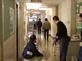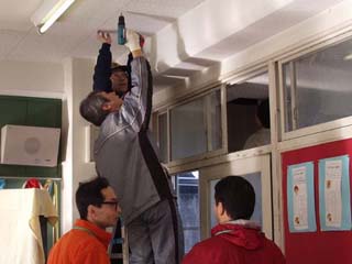 | 12月7日(日)9:00〜11:45 配線担当の方8名の御協力で、3教室のLAN配線工事の事前実施をいたしました。どうもありがとうございました。13日(土)もよろしくお願いいたします。 |