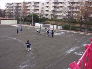 | 12月17日(水) 2カ月ぶりに運動場が使えるようになりました。早速5,6年がサッカーの朝練で使い始めました。休み時間には、新しくなった鉄棒や登り棒で、子ども達が元気に遊ぶ姿が見られました。 |
