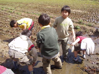 1年生の時から生活科では、よく新治の森に出かけています。新治の森には、田んぼあり、小さながけあり、そしてなにより子どもたちの目を輝かせる、いろいろな種類の生き物たちがいます。1年間を通じて、季節を感じながら、豊かな自然とたくさん関わっています。