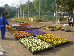一斉美化デー 地域の一斉美化デー(11月5日)で、学校もパンジーの苗をたくさんいただきました。 当日、教職員や児童、保護者の皆さんなどが参加し、学校のまわりに植えました。しばらくの間、美しい花を咲かせてくれることでしょう。 |