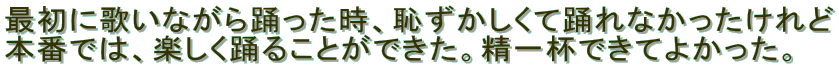 本番では、楽しく踊ることができた。精一杯できてよかった。