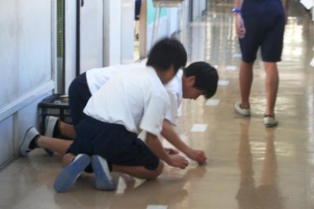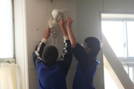 2学期は明日で終了です。今日は、全校で学期末の大掃除をしました。 床や壁の汚れを落としたり、扇風機のカバーを外して羽を掃除したり、エアコンのフィルターを取り外して洗ったりと、 普段できない箇所を重点に行いました。 全校をまわって様子を見ましたが、生徒たちは、とてもよく掃除をしていました。最後に衛生委員会の生徒たちが全校のローカと 階段のワックスがけをしました。気持ちよく新年を迎えることができます。