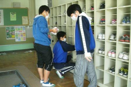 卒業を間近に控えた3年生は、1、2時間目に式の練習をし、3、4時間目は、大掃除を行いました。 3年間使用しお世話になった教室の床を、感謝の気持ちを込めて、磨きました。卒業まで、あと4日です。