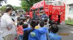 5月9日(木)、消防署の方に来校していただき、防災プログラムを実施しました。2年生は、煙体験・起震車体験・車両見学を行いました。煙体験では、火事などで煙が充満しているときの避難の仕方を教わりました。起震車体験では、震度5の揺れを体験しました。車両見学では、水槽付き消防車の見学をしました。消防車や消防車に積まれているものついて教わりました。6年生は、起震車体験に加え、水消火器の使い方や応急処置の仕方を教わりました。応急処置の仕方では、簡単な応急処置とけが人の搬送の仕方をレクチャーしていただきました。