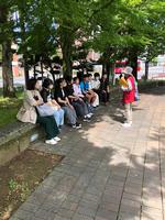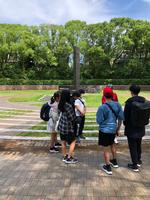 平和祈念像の前で学年集合写真を撮影したあと、午前10:00現在、平和ガイドさんと学習中です。