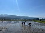 2日目、全員元気に早起きし、午前中は各々の宿の近くで田植えを行う予定です。
