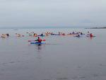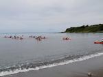 2日目は薄曇りの絶好のシーカヤック日和です。朝食を食べた後、海岸に出てシーカヤックをしました。すいすい進む人、苦戦する人、様々です。