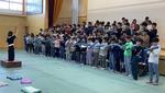 10歳を祝う会は、4年生の10歳を大人の成人式の半分ととらえ、自分の成長を仲間と認め合い、お祝いすると共に、家族にその成長やこれからの自分の姿を伝える活動です。一人ひとりが今後の決意を述べたり、学年全体で歌や合奏を披露したりしました。その中には4年生の思いを音楽の山本先生が歌にしたオリジナルソング「10年間歩いてきた道」もあり、子どもたちはを気持ちを込めて歌っていました。後半は親子レクで、クラス毎に子どもVS保護者で綱引きを行いました。一生懸命な子どもたちの姿がほほえましかったです。