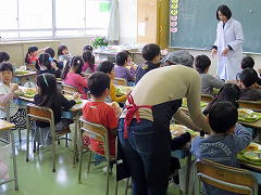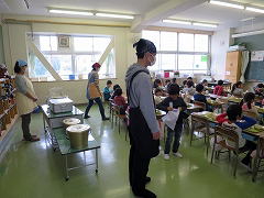 2015.4.10(金) 「はじめてのきゅうしょく」 ボランティアのほごしゃのかた、ほんとうにありがとうございました。1ねんせいのみんなは、はじめてのきゅうしょくをおいしそうにたべていました。 |