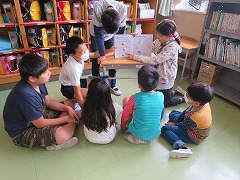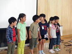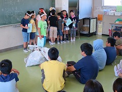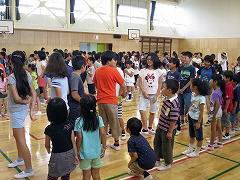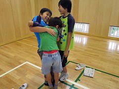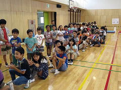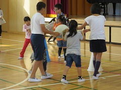 2015.7.8(水) 「1・6ねんしゅうかい」 じゃんけんをしてまけたら、しいてあるしんぶんしを はんぶんにおり、 たてなくなったらまけ という しんぶんバランスゲームを おこないました。しんぶんからおちないように 6ねんせいが おんぶしてくれたり、だっこしてくれたり。とてもたのしい しゅうかいでした。 |