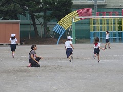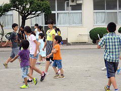 2015.6.10(水) 「1・6ねんしゅうかい」 6ねんせいのおにいさん、おねえさんといっしょに、「たろうさんゲーム」をしました。「たろうさん」のかわりに「1ねんせい」や「6ねんせい」ということばでした。さいしょは、みんなひっかかってばかり。とてもたのしく6ねんせいとあそぶことができました。 |