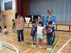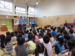 2015.7.1(水) 「はまっここうつうあんぜんきょうしつ」 みなみけいさつしょのかたに、あんぜんな どうろの あるきかたを おしえていただきました。くるまが きていないか かくにんを しながら あるくことが たいせつだと おもいました。おしえていただいたことを がっこうの とうげこうのときに できるといいですね。 |