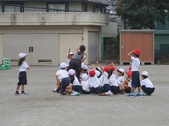 2015.10.14(木) 「6ねんせいとのふれあいしゅうかい」 6ねんせいといっしょに、しんぶんしにのせたボールをはこぶリレーをしました。6ねんせいがやさしくこえをかけてくれて、みんなじょうずにはこんでいました。 |