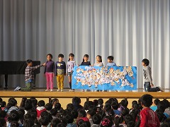 2015.12.16(水) 「ぜひ見にきてください」 1ねんせいは、こくごでべんきょうした「くじらぐも」のおはなしにあわせて、1ねんせいになってからできるようになったことをはっぴょうします。 |