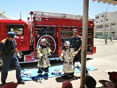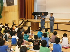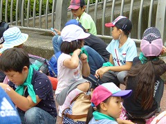 2015.7.15(水) 「おでかけ防災教室」 大岡消防出張所の方が来て、火事に関することを教えていただきました。後半は、水消火器体験、けむり体験、消防車見学をしました。いろいろなことを体験でき、とても勉強になりました。 |