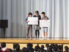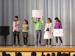 2015.12.16(水) 「藤の木フェスタ発表しょうかい」 1組『5-1science experiment(理科実験)』、2組『大造じいさんとガンと5年生』、3組『日本の未来をつくる人々』という内容です。お楽しみに。 |