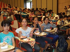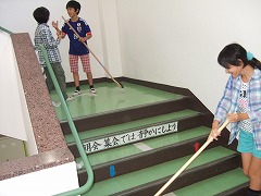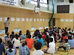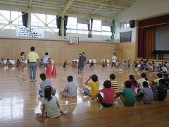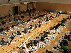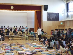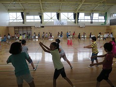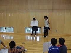 2015.8.28(金) 「御殿場宿泊体験学習に向けて」 キャンプファイヤーの練習をしました。火の神の登場シーンのせりふを練習したり、ソーラン節をおどったりしました。本番が楽しみですね。 |