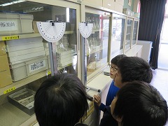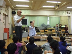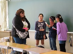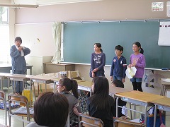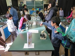 2015.12.19(土) 「1組『5-1science experiment(理科実験)』」 見に来た人たちに、顕微鏡やふりこなどを使って、いろいろな実験や観察をしてもらいました。少しでも理科にきょうみをもってくれたかな?みんな、一生けん命発表していました。 |