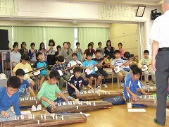 2015.9.25(金) 「和楽器の体験」 琴と三味線の体験をしました。クラスごとに「さくらさくら」を演奏しました。きれいな音色がひびいていました。 |