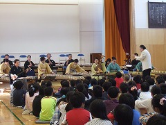 2015.10.28(水) 「音色がきれいだったね」 和楽器の鑑賞がありました。5年生は一部共演をしました。琴、三味線、リコーダーで『さくらさくら』の演奏をしました。とてもきれいな音色が体育館いっぱいに響いていました。 |