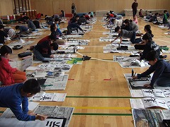 2016.1.8(金) 「書き初め」 「美しい空」と書きました。お正月らしく『春の海』が流れる中、静かな雰囲気で集中して書くことができました。 |