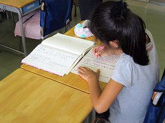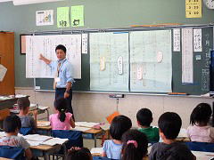 2015.7.3(木) 「けんきゅうじゅぎょう」 1くみで、5じかんめ、こくごのけんきゅうじゅぎょうをおこないました。たくさんのせんせいがじゅぎょうを見ていましたが、みんな、せっきょくてきにじゅぎょうにのぞんでいました。がんばりました! |