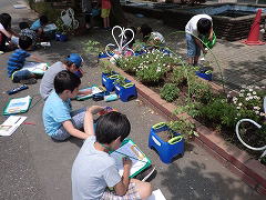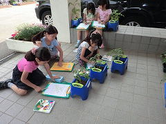 2015.5.28(木) 「トマトのかんさつ」 だいぶ、みが大きくなってきました。はっぱの大きさやかたちに気をつけて、かんさつしました。 |