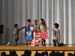 2015.12.16(水) 「フェスタしょうかいしゅうかい」 1組『ガラクタカラバコ』、2組『はなまる2組わくわくはっぴょうかい』、3組『わくわくタカラバコ』、4組『2-4といっしょに夏と冬の野さいを知ろう!!』というはっぴょうないようです。お楽しみに! |