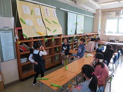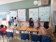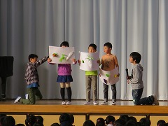 2015.12.19(土) 「4組『2-4といっしょに夏と冬の野さいを知ろう!!』」 野さいについてしらべたことを、まるで先生のように、見に来た人たちにはっぴょうしました。みんな、とてもかっこよかったよ。 |