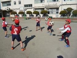 2016.1.27(水),1.28(木) サッカー食育キャラバン 横浜F・マリノスから、コーチが来てくれました。ボール遊びやサッカーの試合をして、元気よく体を動かし、協力することの大切さを学びました。 |