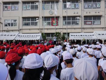 心配されていた校庭のグランドコンディションも、早朝の職員の整備のかいもあって、無事運動会を実施することができました。また、多くの地域、保護者、ご家族の皆様にご来校いただき本当にありがとうございました。写真にあるように閉会式では、PTA会長より心温まる励ましのお言葉、お褒めの言葉をたくさんいただいて、令和初めての運動会が幕を閉じました。