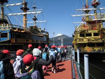 昨年の7月に三浦宿泊体験学習がコロナ禍で中止となり、その代替として箱根へ体験学習に行きました。まずは、 箱根町港から桃源台港まで芦ノ湖の海賊船を楽しみました。富士山がとてもきれいでした。その後、二手に分かれ交代で見学しました。一つは「 生命の星、地球科学館」で、いろいろな標本の見学をしました。感染症対策で標本を触ることはできませんでしたが、貴重な標本を見ることができました。もう一つは、「 金指寄せ木細工体験」です。自然の木の色を生かして、工夫して模様を作りながら寄せ木体験を楽しみました。緊急事態宣言も解除され、天候にも恵まれたこともあり道路渋滞に遭いましたが、本当に楽しい1日になりました。