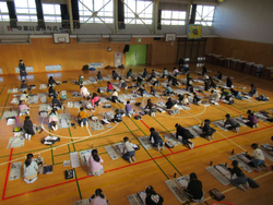 体育館に学年で集まって、書き初めを行いました。