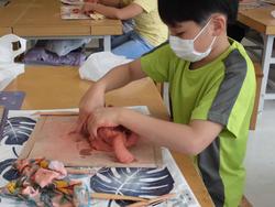 図工では、粘土の作品作りに取り組みました。具体的な何かを作るのではなく、粘土を触って感じたことを形にする学習です。粘土の塊をこねたり、ちぎったり、伸ばしたり、丸めたり・・。いろいろと触っているうちに浮かんだアイデアを形にしていくと、子どもたち一人ひとりの様々な作品が出来上がりました。個人面談期間に教室前に展示しますので、ぜひご覧ください。