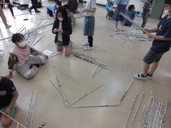 新聞紙を使った造形あそびを行いました。細く丸めた新聞紙の棒をたくさん作り、つなぎ方を試しながら組み合わせていきました。友達と試行錯誤しながら、協力して作業していました。ただの新聞紙が、箱のような立体になったり、家のように見えたり、思いのままにつなぎ合わせることを楽しんでいました。