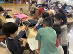 国語「うみのかくれんぼ」で、かくれんぼクイズにチャレンジしました。くちばしクイズの時よりも難しい文章でしたが、「隠れている場所」や「体の特徴」をよく読んで、一生懸命クイズを作りました。作ったクイズは、2年生や5年生などの他学年のクラスに披露しに行きました。「大成功だった!!」「楽しいって言ってもらえたよ!」と子どもたちは満足そうにしていました。また一つ成長した子どもたち。これからの活動も、自信をもってチャレンジしていってほしいです。