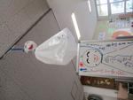 そんな中、一階廊下にてるてるぼうずが登場。子どもたちも大喜び。