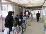 子どもたちが健康診断中、保護者の方には体育館でお待ちいただきました。子どもたちは10人のグループを作って、教員引率で健康診断を行いました。