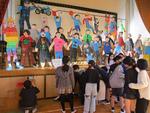 12月の最後に、体育館ステージに素敵な展示が登場しました。5組のみなさんの作品です。