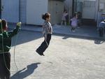 一人で跳ぶ子、友だちと跳ぶ子、先生と一緒に跳ぶ子。