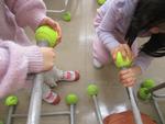 一年生も、消音のためのテニスボールを一度外して、きれいにしていました。とても難しい作業ですが、上手にできました。