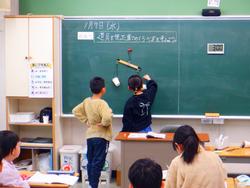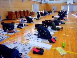 今日明日と各学年ごとに書き初めがあります。今日は体育館で5、6年生が、教室で1年生が行っていました。一年の初めに当たり、一人一人が思いを込めて真剣に取り組んでいました。