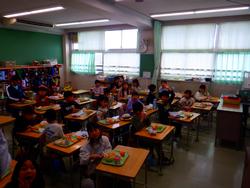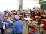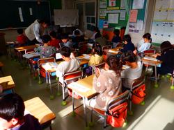 冷たい雨のクリスマスイブとなった今日、校内を巡回していると黙々と版画に取り組む4年生、おにぎりパーティーを開き、美味しそうにおにぎりを食べる個別級、干していた稲から脱穀する5年生の姿が見られました。また、明日は今年最終日ということもあり、大掃除や冬休みの課題を配るクラスもありました。あと1日、よい締めくくりをしてほしいです。