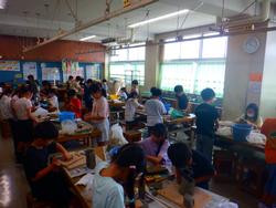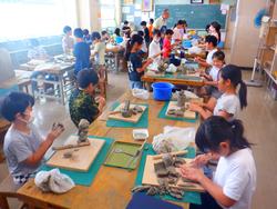 図工室では4年生がねん土を手につけながら夢中になって作品作りをしていました。ややかためのねん土をこねたり、たたいたり、伸ばしたりしながら思い思いの作品に仕上げていました。
