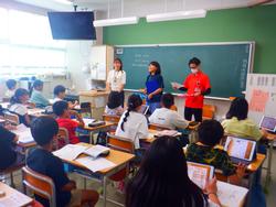 4年1組は総合の時間に3名の方をお招きしていました。泉区社会福祉協議会の方、地域ケアプラザの方、デイサービスの方の3名です。今日はそれぞれの方からお仕事の内容や具体的な活動の様子などについて教えていただきました。地域ケアプラザは横浜市にしかない施設であることや泉区社会福祉協議会の事務所はいずみ中央駅の相鉄ローゼンの上にあることなどに驚きの声が上がっていました。これからどんな活動に広がっていくのか楽しみです。