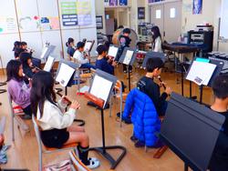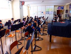 音楽室では3年生が「聖者の行進」の演奏をしていました。まだ楽譜から目が離せず、テンポに合わせることに苦労している子もいましたが、みんな真剣に取り組んでいました。大太鼓、小太鼓、バスオルガン担当の子もそれぞれ一人なので、気持ちを集中して演奏していました。