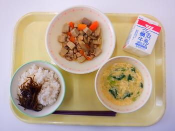 今日の給食では、3年生が総合の学習の時間にお世話になっている大矢養鶏さんの卵を使った「3年にこにこたまごスープ」が提供されました。3年生が今日の給食のために作成したポスターで宣伝をしたり、動画を今朝全校で視聴したりするなど、準備が進められてきました。今日はその他にも横浜で採れた小松菜やねぎが使われるなど地産地消メニューでした。普段よりなお一層美味しく感じられました。