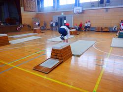 先週末から続く寒さに負けず、子どもたちは元気に体育の授業をしています。4年生は校庭でティーベースを、5年生は体育館で跳び箱に取り組んでいました。跳び箱ではかかえこみとびや台上前転などの技に繰り返し取り組み、少しずつ上達していく様子が見られました。