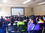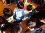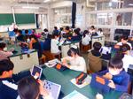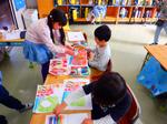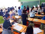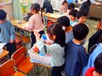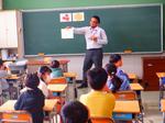 風が強く寒い一日となりました。1年生の教室では国際理解教室が行われていました。アルゼンチン出身のダミアン先生が、クリスマスやお正月について日本とアルゼンチンとの食べ物や習慣など文化の違いを紹介していました。3年生は体育で取り組んでいるタグラグビーについてルールの確認と作戦を考えていました。自分より前にパスを出せないタグラグビーでは、どのように動くことが得点につながるのかチームで考えていました。2年生はカッターの安全な取り扱い方を学び、自分でかいた線に沿って工作用紙を真剣に切る姿が見られました。