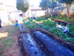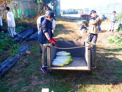 明日の給食で個別級のみんなが育てた大根が提供されます。今日はそのための収穫が行われていました。次々に大きな大根が収穫されていました。給食に提供できる大き目で形の良い大根がとれると、きれいに洗って重さをはかり、給食で使用する分を集めていました。明日の給食が楽しみです!